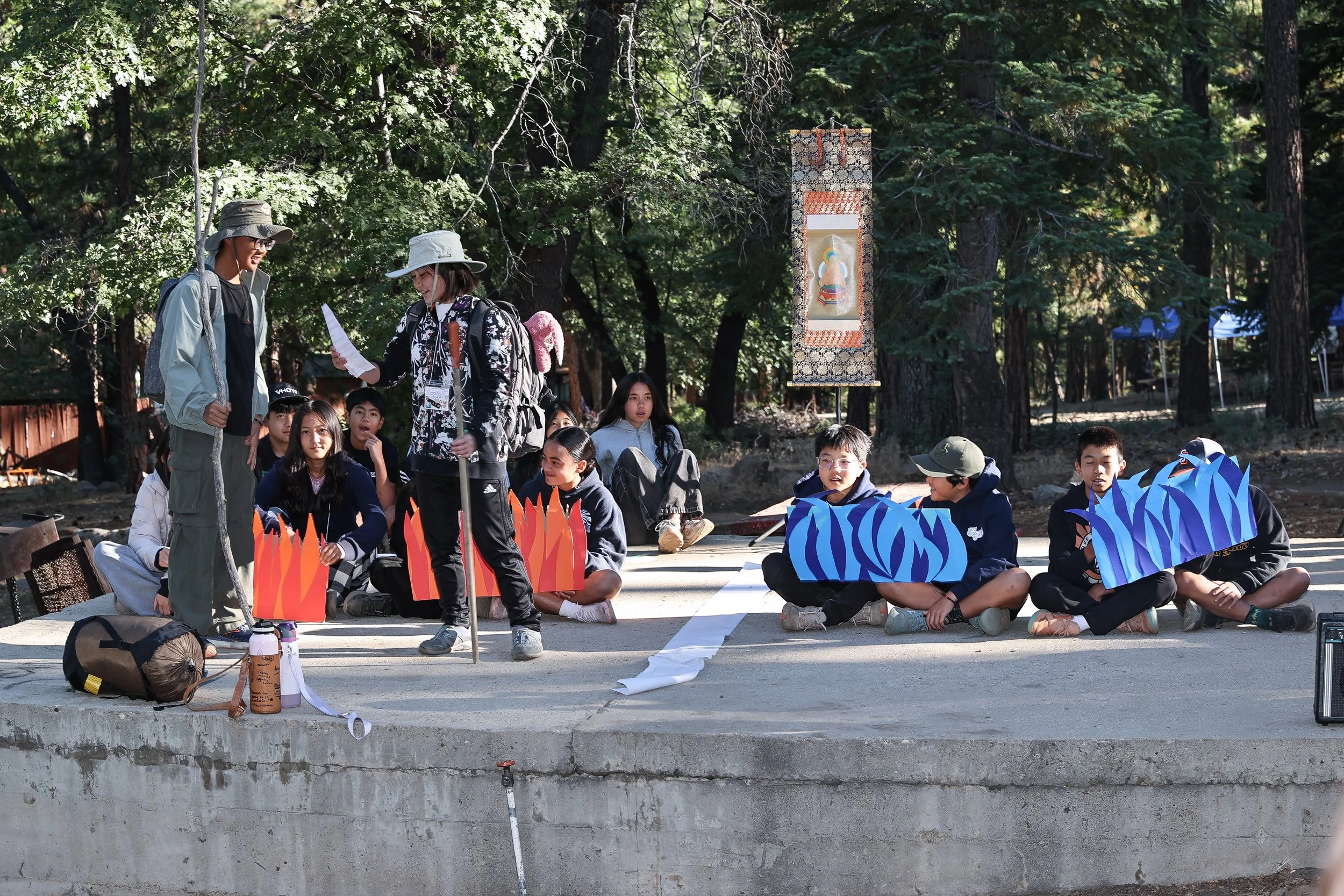 We practiced and performed a play based on the famous parable “River of Fire, River of Water,” also known as “The Two Rivers and a White Path,” written 1,400 years ago by Chinese Master Shan Tao, one of the seven masters revered by our founder Shinran Shonin.